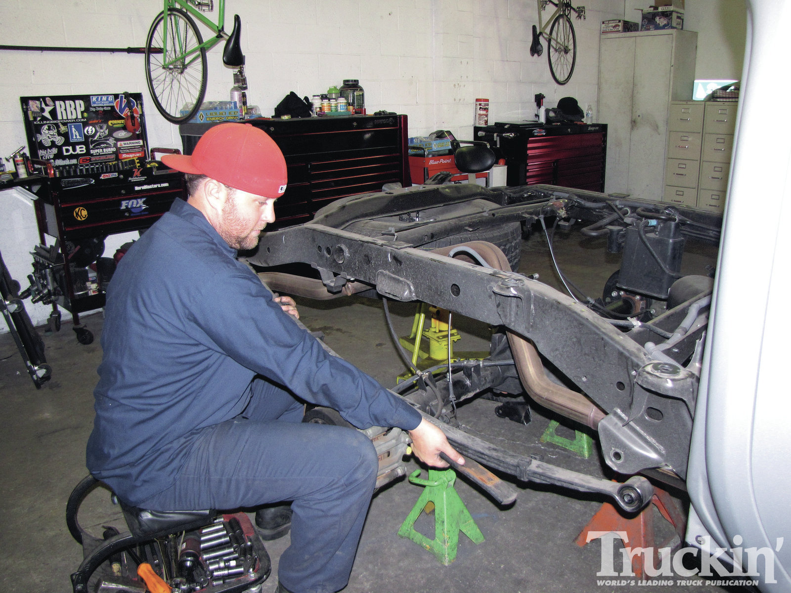 2. Shaughn Reid, owner of Street Shock in Redondo Beach, California, began the Equator’s suspension overhaul by first removing the front calipers, brake rotors, and pulling free the spindles.