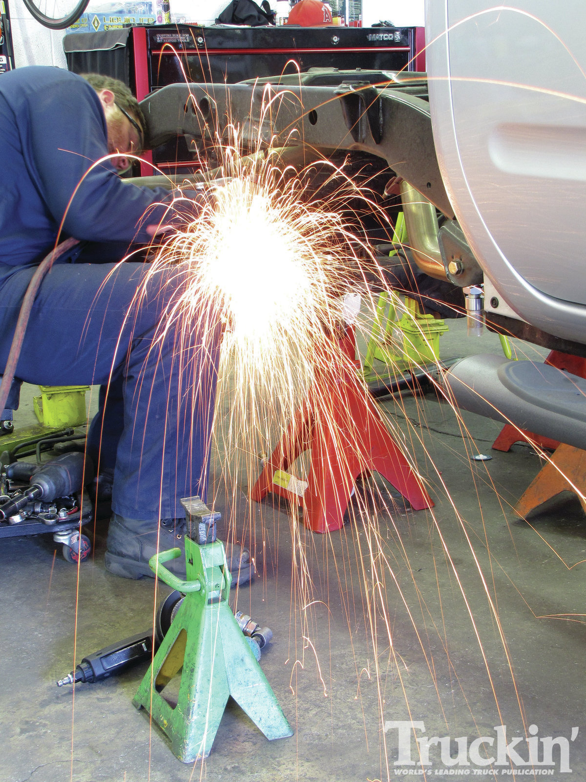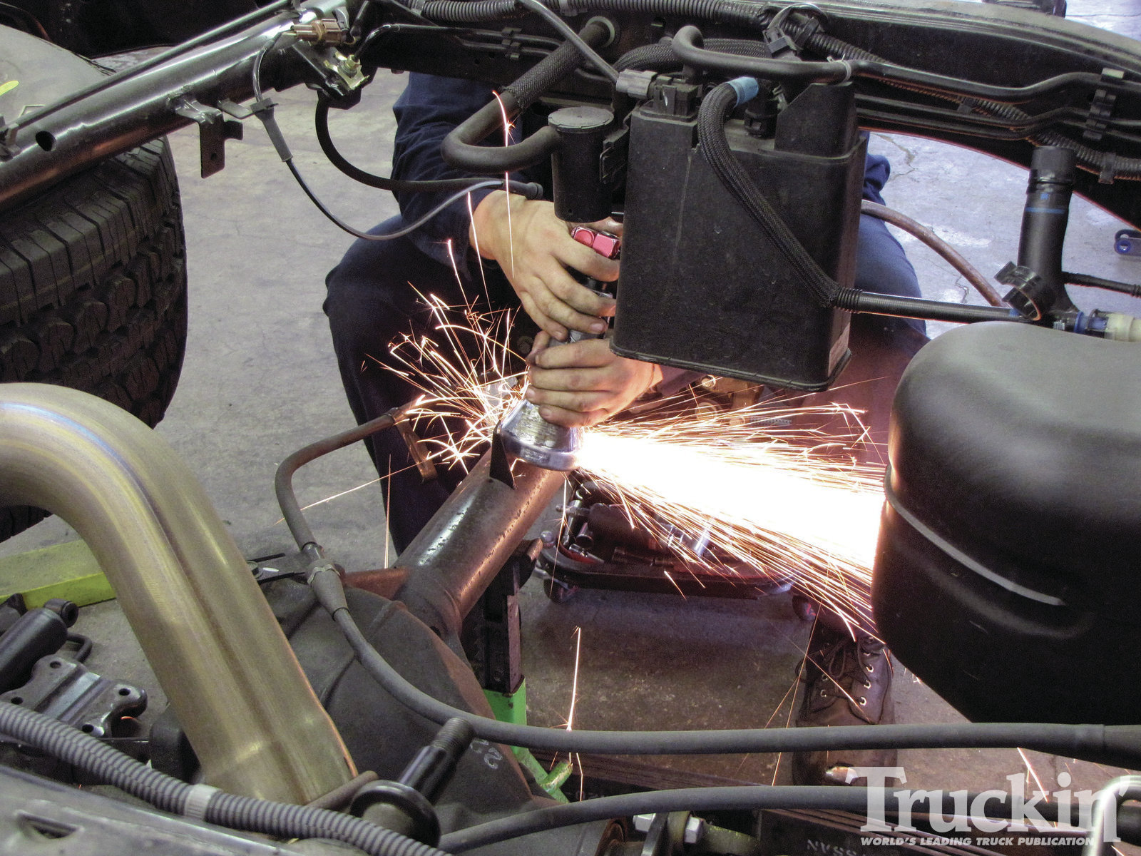 15. Another step for axle prep was to grind the axle tubes down to bare metal for welding.
